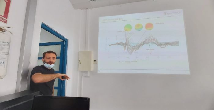 Los pasados días 26 y 27 de abril, de 9,00h a 13,00h., se celebró en el Aula de informática del Instituto de Lingüística Aplicada (ILA) el curso “Introducción al diseño de estudios experimentales del lenguaje a través de la electroencefalografía”, cuyo objetivo ha sido desarrollar habilidades para diseñar y ejecutar experimentos lingüísticos a través de la técnica de la electroencefalografía (EEG).