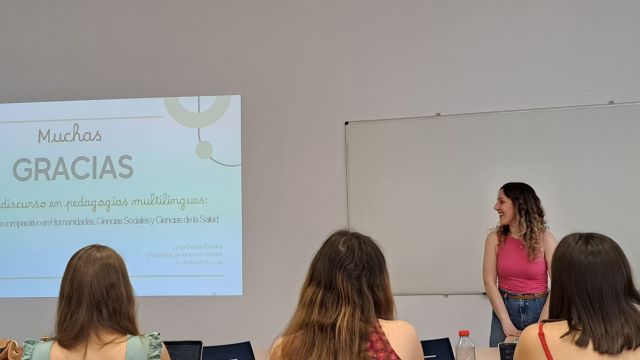 El pasado jueves, 31 de mayo, se celebró en las dependencias del ILA la charla “Metadiscurso en pedagogías multilingües”, impartida por la Profesora Ayudante Doctora Lucía Bellés-Calvera (Universitat de València), con motivo de la realización de una estación de investigación y bajo la coordinación de la profesora Ana Bocanegra-Valle, también miembro del ILA.