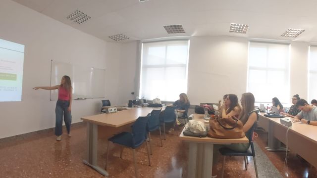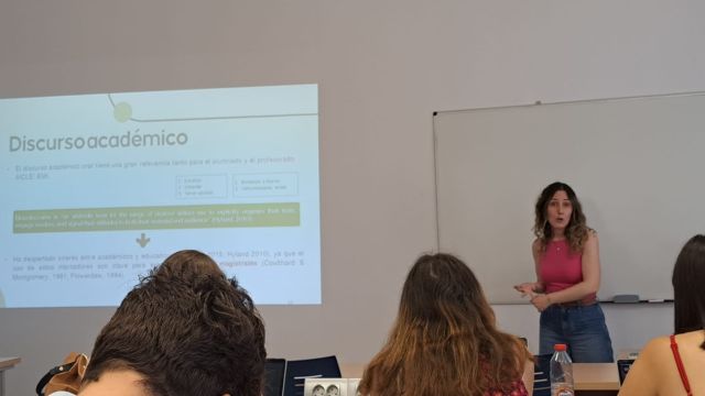 Durante la charla, los asistentes conocieron los contenidos de la tesis doctoral realizada por la investigadora, centrada en el análisis comparativo de los elementos discursivos producidos por el profesorado y el alumnado de diferentes áreas de conocimiento, dentro del marco de la enseñanza AICLE.