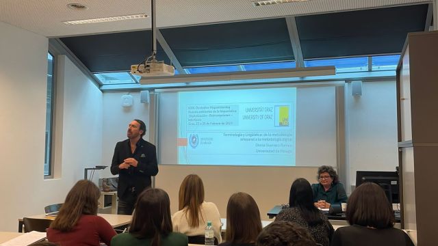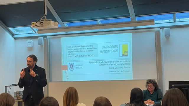 Miembros del Instituto Universitario de Investigación en Lingüística Aplicada han participado en el XXIII Congreso de la Asociación Alemana de Hispanistas, celebrado en Graz (Austria) del 22 al 25 de febrero. La participación del grupo se centró en uno de los paneles temáticos de esta edición, llamado Terminología y lingüística digital, coordinado por Miguel Casas Gómez, director del Instituto.