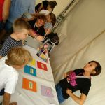 -Por último, el ILA quiso acercar al público de la Noche Europea de los Investigadores la investigación socio-lingüística . A través del taller “Lingüística en vivo y en directo”, les mostramos cómo los lingüistas hacemos un estudio de la disponibilidad léxica. Para ello, se les decía un campo léxico (profesiones, ropa, juguetes…) y ellos tenían que decir rápidamente la palabra que primero se les pasaba por la cabeza y, también, tenían que pescar patos para después estudiar el mayor o menos uso de los anglicismos (¿leggings o mallas? ¿correo electrónico o e-mail?, etc). Todos estos datos se iban reflejando en gráficos.