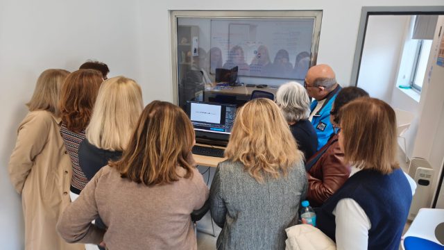 Comenzaron su visita con una breve charla sobre el Instituto y su organización a cargo de Carmen Varo, secretaria del ILA. Tras esta explicación, pasaron a conocer las distintas estancias, instalaciones y equipamientos de manos del personal investigador del ILA, descubriendo de primera mano las salas de Eyetracking y EEG, la Sala de Instrumentación y el Áula Multimedia y el Laboratorio de Ingeniería y Fonética Acústica, así como la labor desempeñada por los investigadores.