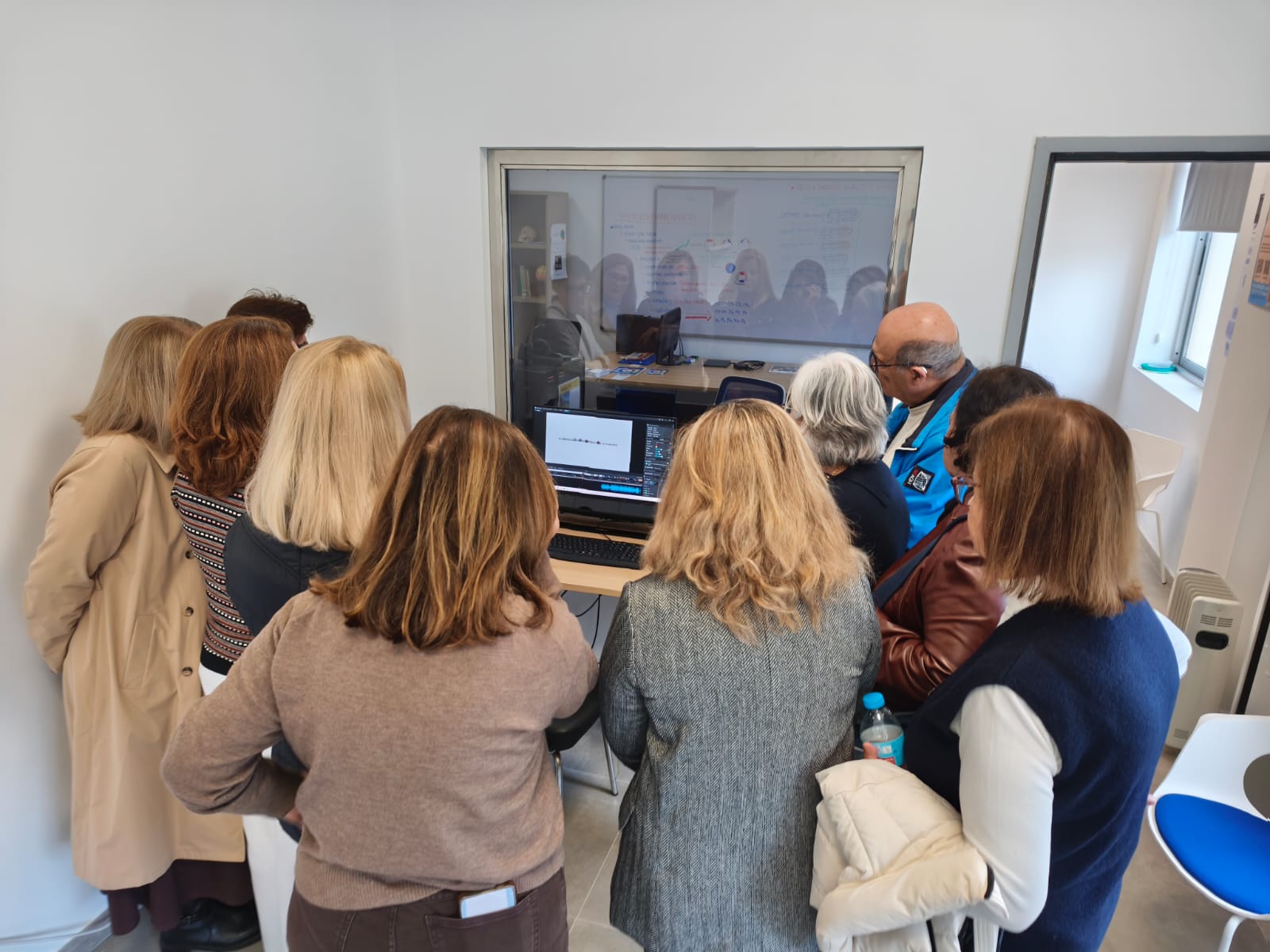Comenzaron su visita con una breve charla sobre el Instituto y su organización a cargo de Carmen Varo, secretaria del ILA. Tras esta explicación, pasaron a conocer las distintas estancias, instalaciones y equipamientos de manos del personal investigador del ILA, descubriendo de primera mano las salas de Eyetracking y EEG, la Sala de Instrumentación y el Áula Multimedia y el Laboratorio de Ingeniería y Fonética Acústica, así como la labor desempeñada por los investigadores.